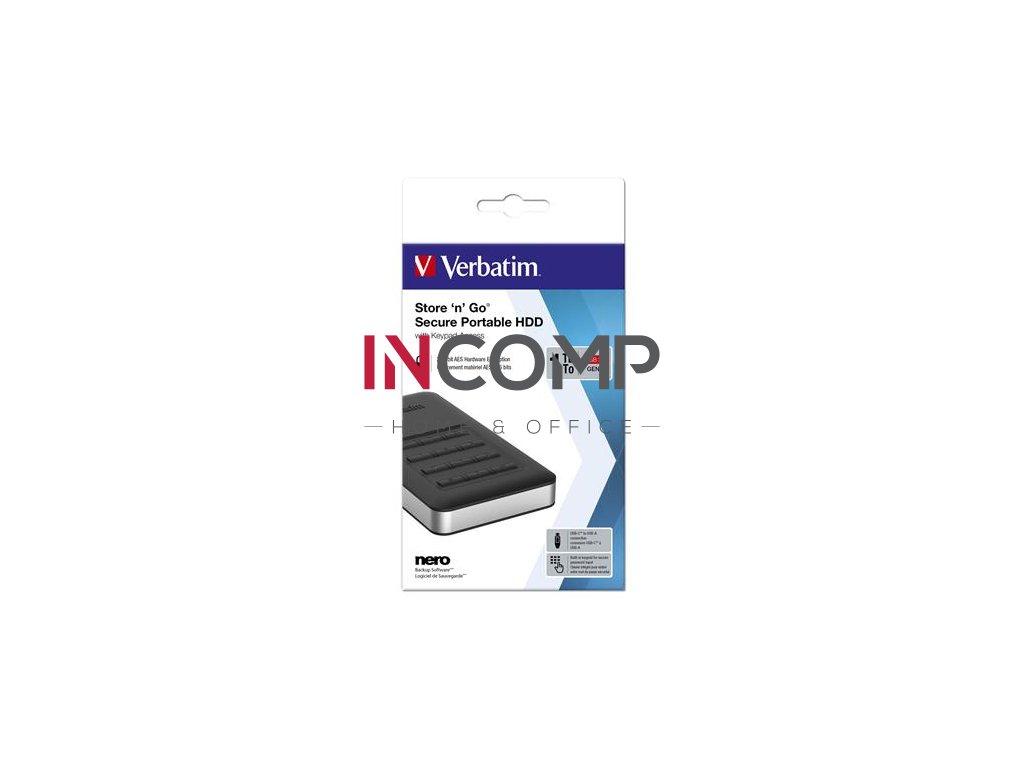 2,5" HDD (pevný disk), 1TB, USB 3.1, heslové šifrovanie, VERBATIM "Secure Portable", čierna