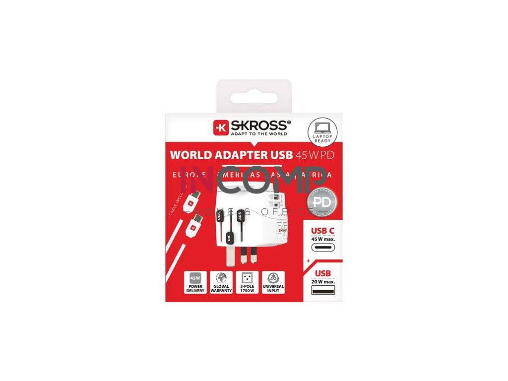 Adaptér pre svetových cestovateľov, 1xUSB-A, 1xUSB-C PD, 45W, USB-C kábel, SKROSS