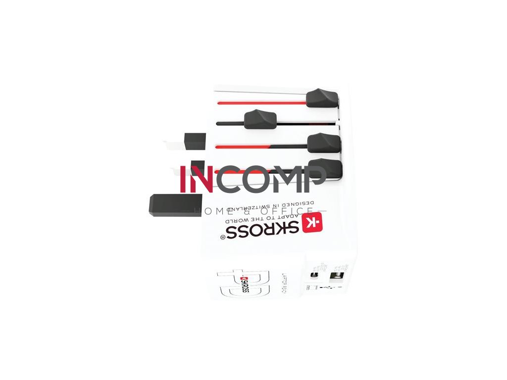 Pomocou SKROSS® World Adapter MUV USB AC65PD môžu cestovatelia z celého sveta súčasne nabíjať jedno USB-C zariadenie a jedno klasické USB zariadenie, pričom zároveň môžu pripojiť aj nepodpísané dvojpólové zariadenie.
