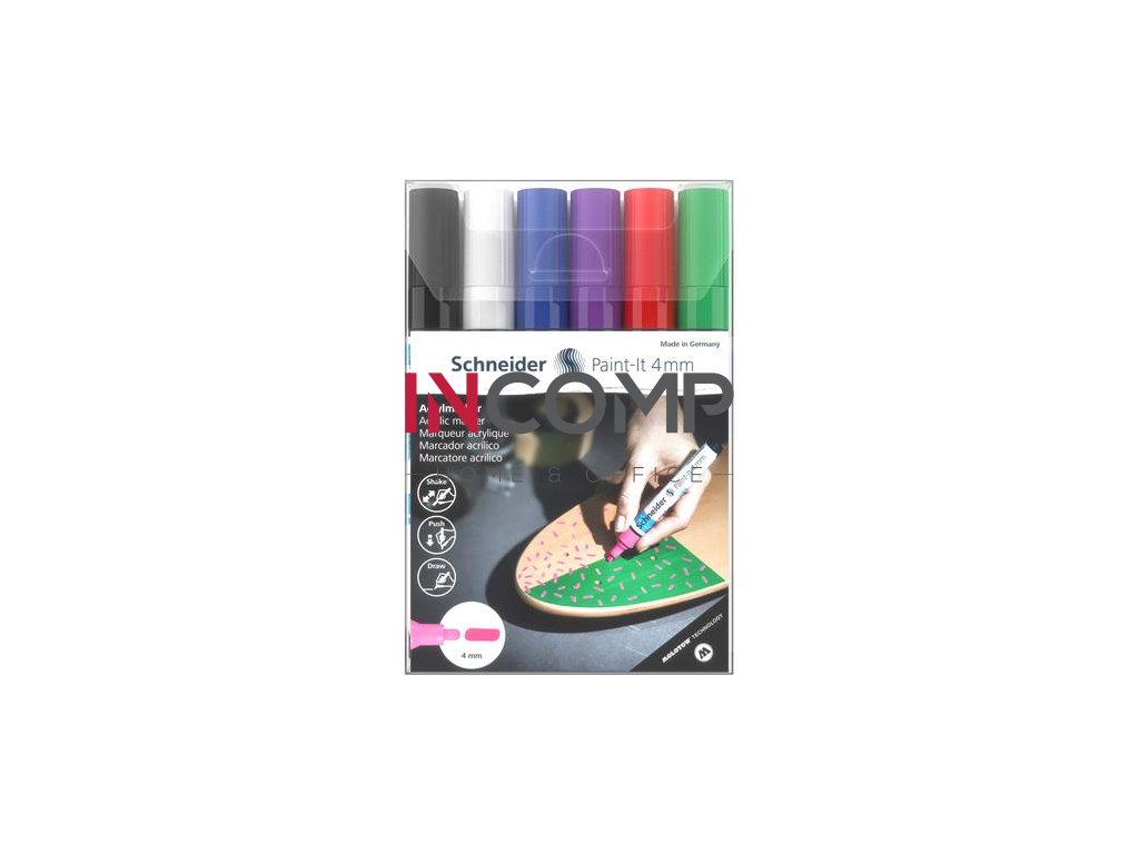 Akrylový popisovač, sada, 4 mm, SCHNEIDER "Paint-It 320", 6 rôznych farieb