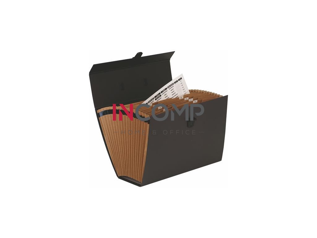 Aktovka s držadlom, kartónová, 19 priehradiek, FELLOWES "Bankers Box Handifile", čierna