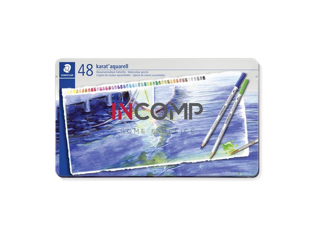 Akvarelové ceruzky, sada, šesťhranné, plechová krabička, STAEDTLER "Karat® aquarell 125", 48 rôznych farieb