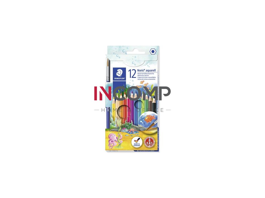 Akvarelové ceruzky, sada, šesťhranné, so štetcom, STAEDTLER "Noris® aquarell 144 10", 12 rôznych farieb