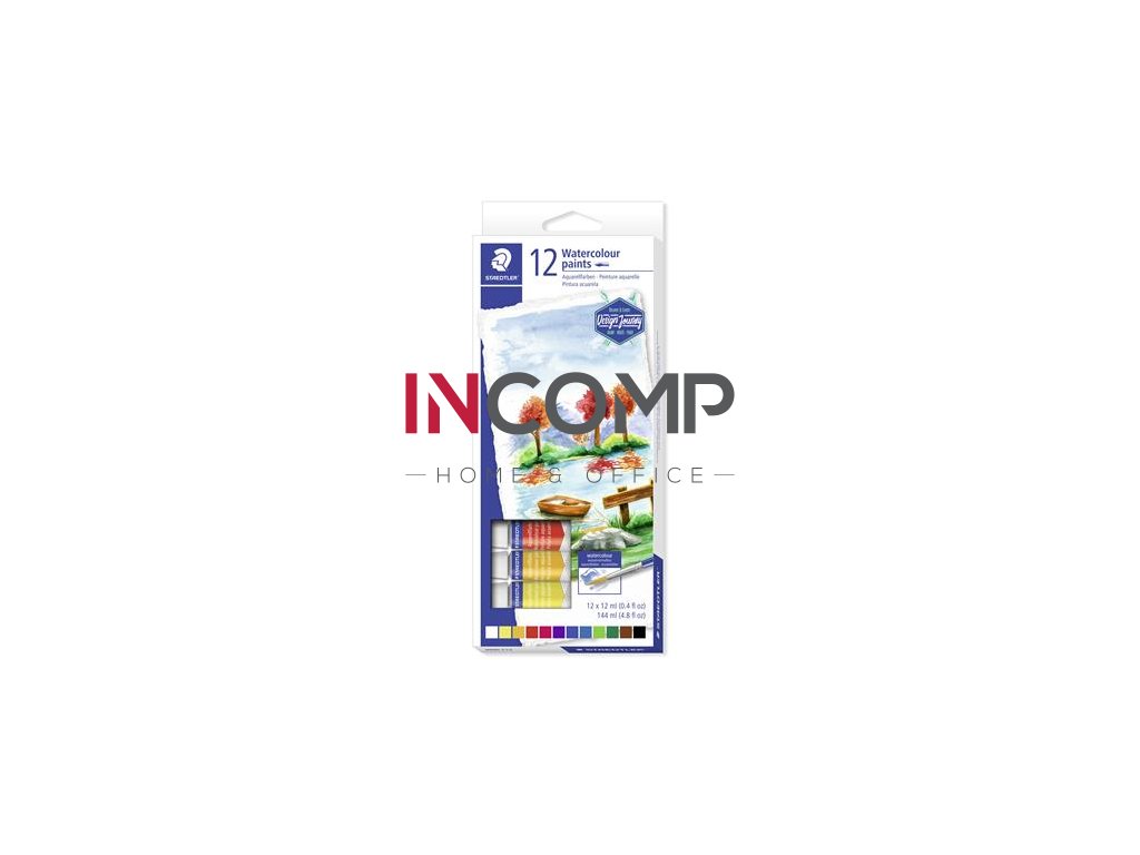 Akvarelové farby, v tube, STAEDTLER "8880", 12 rôznych farieb