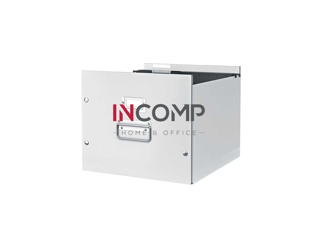 Archivačná škatuľa na závěsné desky formátu A4. Skladacia pre úsporu miesta, keď sa nepoužíva. Robustné kovové úchyty pre ľahké prenášanie. Rámik na popisovací štítok. Laminovaný povrch a kovové rohy pre lepšiu a trvalejšiu ochranu. Moderný design, ktorý sa bude skvelo vynímať v každej kancelárii.