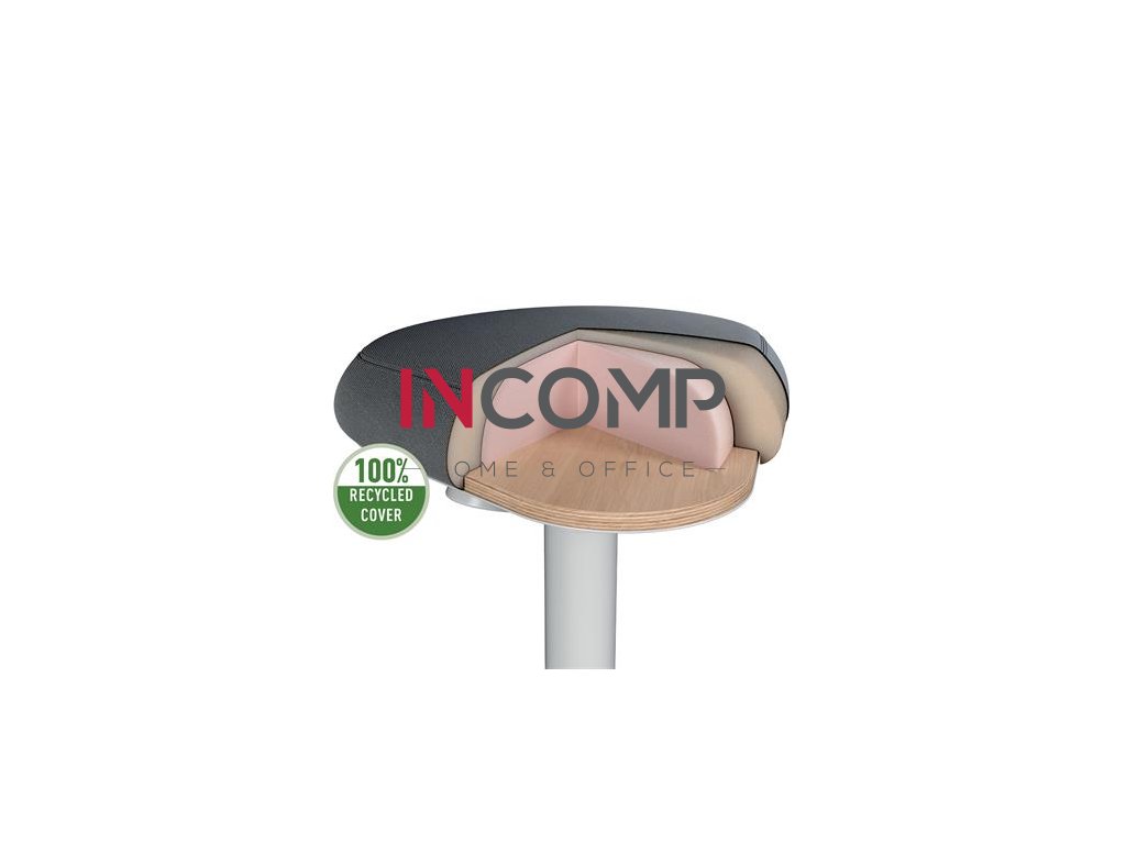 Trojuholníkový tvar sedadla, podobný sedlovým stoličkám, rovnomerne rozkladá váhu na panvové kosti. Mäkké penové čalúnenie znižuje celkovo tlak na stehná a nohy.
