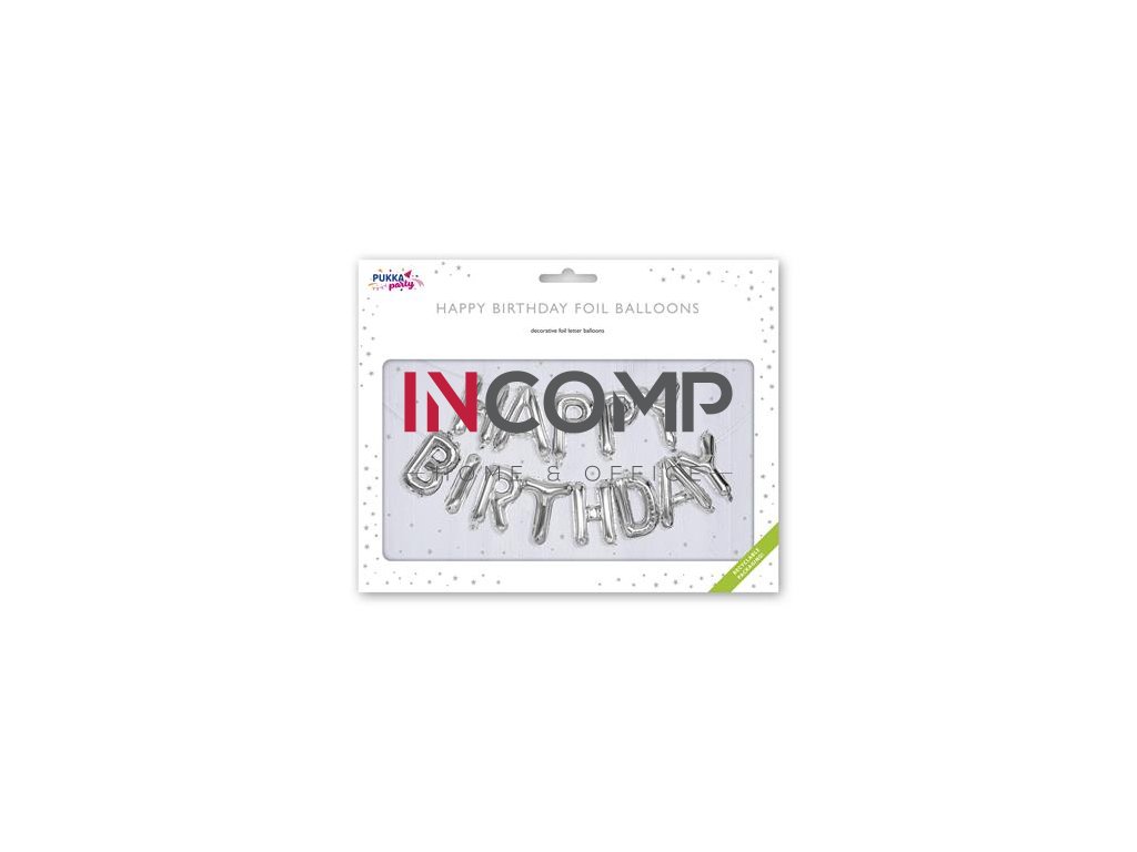 Balón, 40 cm, PUKKA PAD "Happy Birthday", strieborná