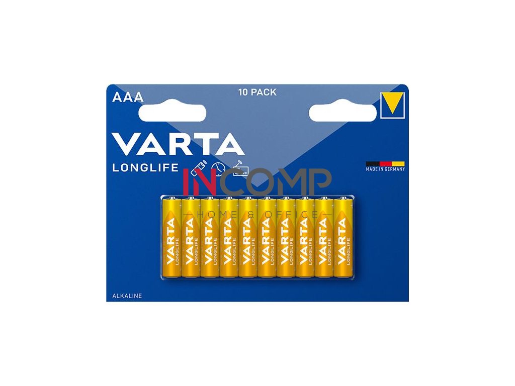 Batéria AAA mikrotužková, 10 ks, bez plastu, VARTA "Longlife"