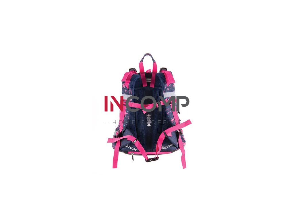 - priehradky: 2 veľké vnútorné priehradky + 1 predná + 2 bočné priehradky - vystužené ramenné popruhy s nastaviteľnou dĺžkou - anatomický chrbát so sieťovinou a penou - hrudný a bedrový popruh pre správnu oporu - kovový zips - materiál: polyester 600d - rozmer: 41x28x20 cm - hmotnosť: 0,87 kg