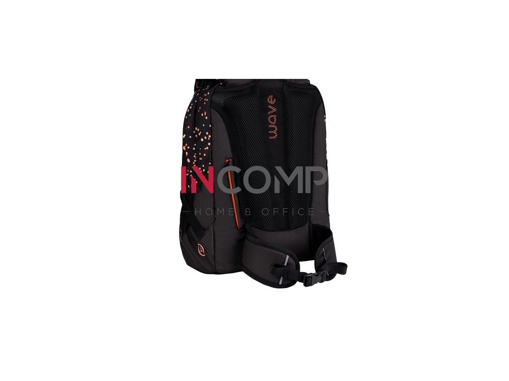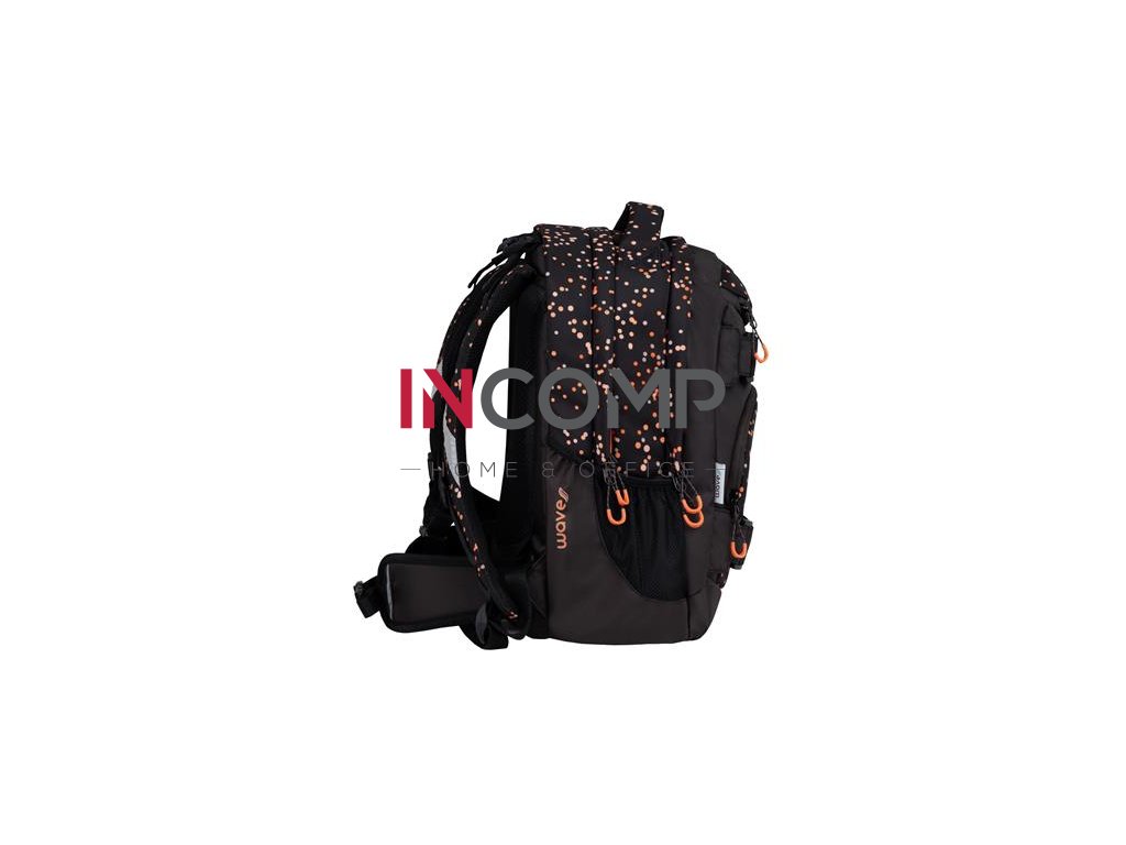 Batoh Wave Infinity Move je ideálny do školy, na cesty alebo na výlety - 2 vnútorné priehradky + 1 malé vrecko na zips + 1 tajná priehradka otvárajúca sa zozadu + 2 bočné priehradky - 1 polstrovaná priehradka na notebook - 1 priehradka na tablet - samostatné vrecko na uloženie powerbanky - samostatné vrecko na slnečné okuliare - pásik na zapínanie kabáta - ergonomický dizajn - priedušný chrbát -nastaviteľné hrudné a ramenné popruhy - svetlý farebný vzor -materiál: vodeodolný polyester - reflexné prvky na všetkých stranách - rozmer: 40 x 27 x 21 cm - váha: 1020 kg - odporúčaný vek: od 10 rokov - záruka 2 roky