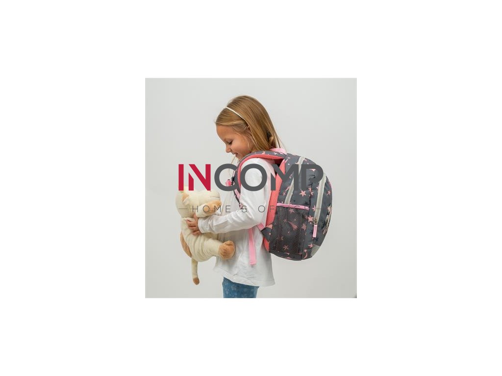 Batoh aj pre najmenších - 2 vnútorné + 2 bočné priehradky (0,5 l) - nastaviteľný hrudný popruh pre optimálne rozloženie váhy - reflexné prvky na všetkých stranách - materiál: vodeodolný polyester - možno prať v práčke - zapínanie na zips určený pre malé ruky - rozmer: 13x33x23 cm - váha: 300-330 g -odporúčané pre predškolákov -2 roky záruka
