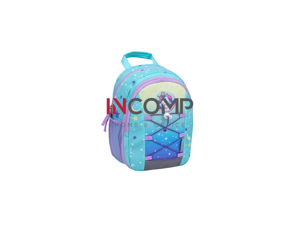 Batoh aj pre najmenších - 2 vnútorné + 2 bočné priehradky (0,5 l) - rozšíriteľné predné vrecko (+6 cm) - nastaviteľný hrudný popruh pre optimálne rozloženie hmotnosti - reflexné prvky na všetkých stranách - materiál: vodeodolný polyester - možno prať v práčke - zapínanie na zips určené pre malé ručičky -rozmer: 23x9 (+6)x13 cm -váha: 270-290 g -odporúčaný vek: pre škôlkarov -2 roky záruka