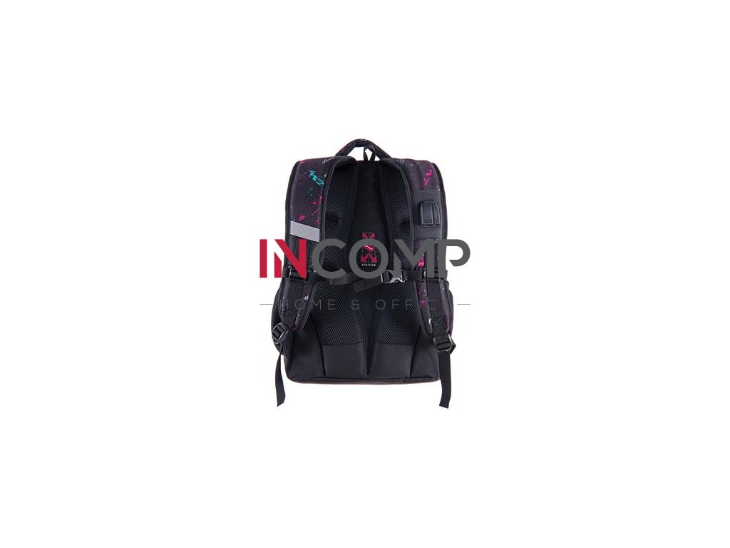 - priehradky: 2 hlavné + 1 predné + 2 bočné vrecká - vystužený ramenný popruh v tvare banánu - sieťovaná penová priedušná zadná časť - 3-vrstvová dvojitá zásuvka - USB a audio výstup - kovový zips - materiál: 600 d polyester - rozmer: 42x30x20 cm - hmotnosť: 0,78 kg