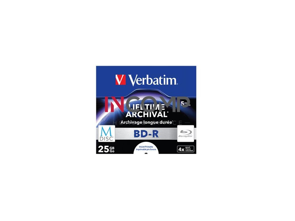 BD-R BluRay disk, archivačný, potlačiteľný, M-DISC, 25GB, 4x, 1 ks, klasický obal, VERBATIM