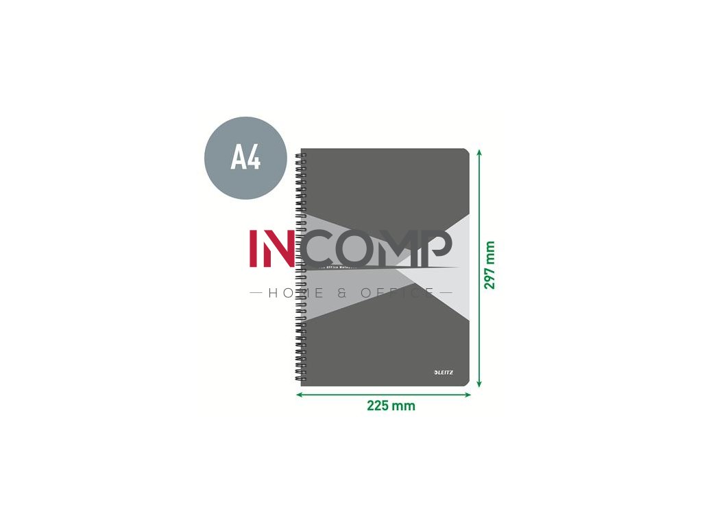 Blok, A4, linajkový, 90 listov, laminovaná kartónová obálka, LEITZ "Office", sivá-červená