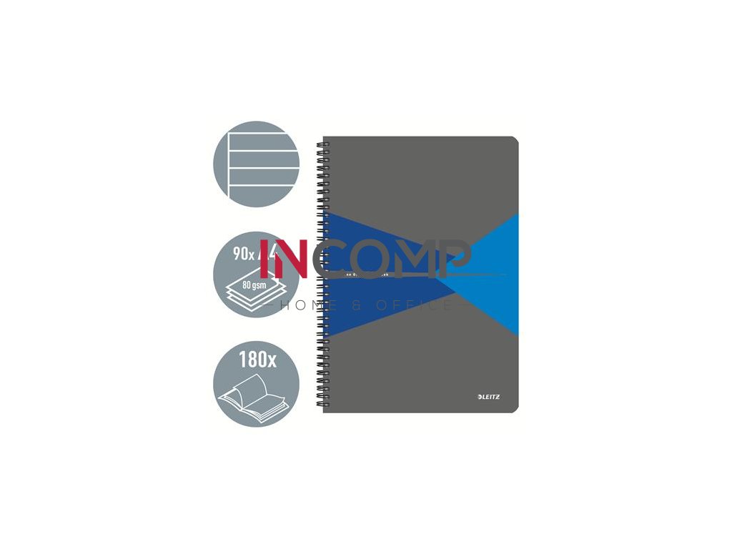 Blok, A4, linajkový, 90 listov, laminovaná kartónová obálka, LEITZ "Office", sivá-modrá