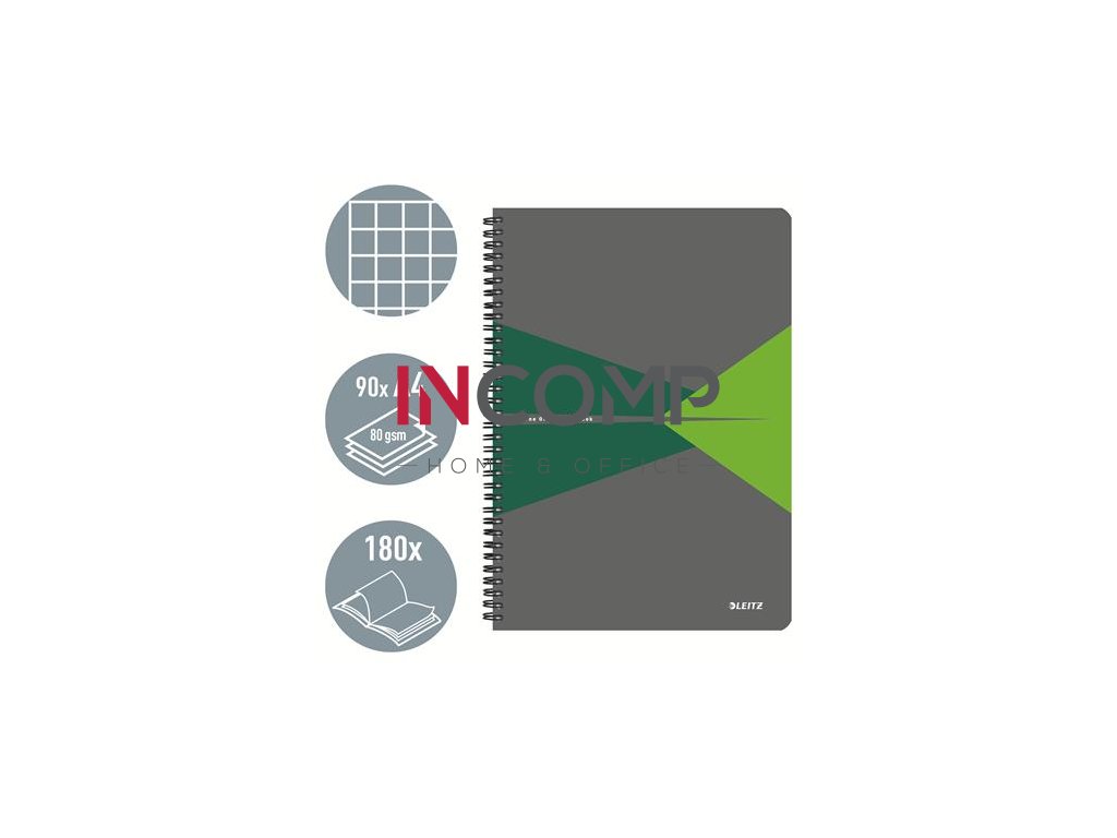 Blok, A4, štvorčekový, 90 listov, laminovaná kartónová obálka, LEITZ "Office", sivá-zelená