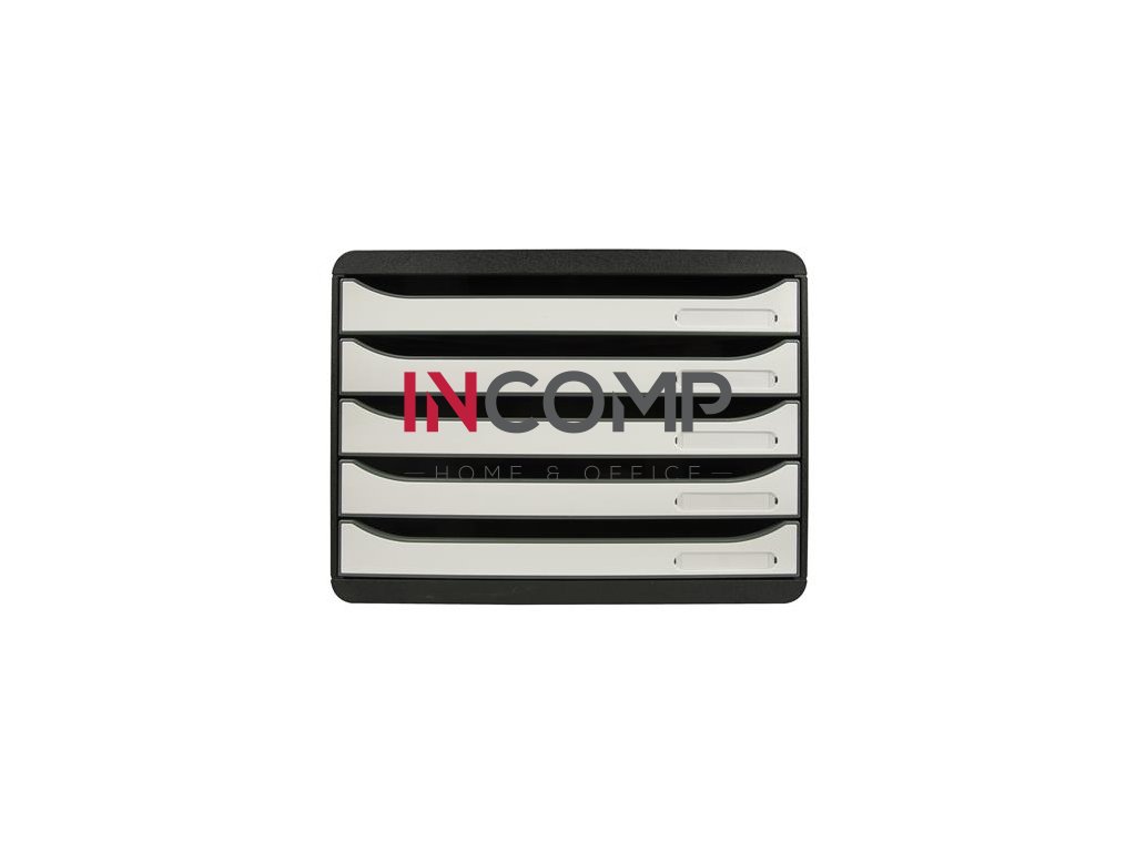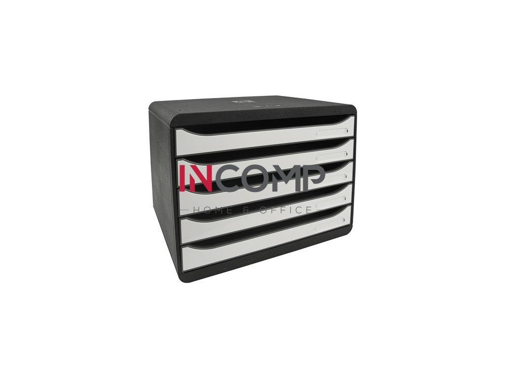Box na dokumenty, plast, 5 zásuviek, EXACOMPTA "BIigBox Glossy", čierny-biely
