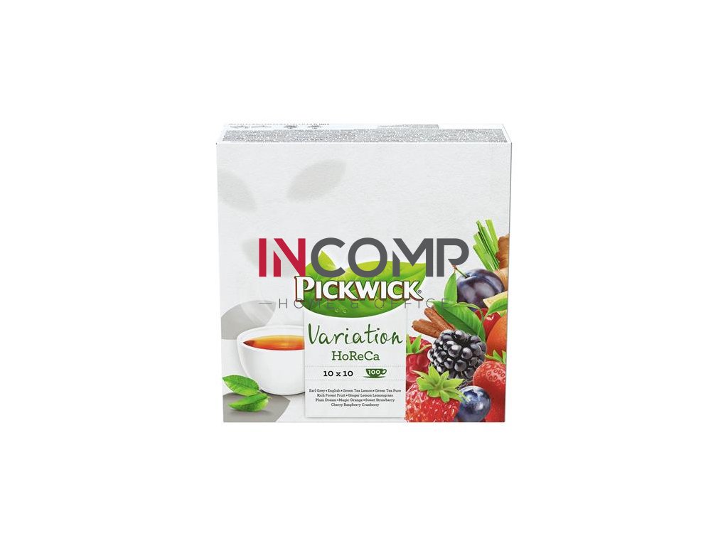 Praktikcký výber s rôznymi príchuťami. 10 rôznych čajov v 1 balení, každý si nájde svoj obľúbený: English, Earl Grey, Zelený čaj, Zelený čaj s citrónovou trávou, Ovocný čaj s príchuťou slivky, vanilky a škorice, Ovocný čaj s príchuťou pomaranča, Ovocný a bylinkový čaj s príchuťou a kúskami lesných ovocí, Ovocný čaj s príchuťou čerešne, maliny a brusnice, Ovocný a bylinkový čaj s príchuťou zázvoru a citrónu, s indickou citrónovou trávou, Ovocný čaj s príchuťou a kúskami jahody. Pohodlné riešenie v reštauráciach, v kanceláriach. Balenie: 100 zabalených vresúšok (190 g/krabica), 10 filtrov/príchuť, Obsahuje - Earl Grey: čierny čaj s príchuťou bergamotu - English: 100% čierny čaj - Green Tea Lemon: zelený čaj, citrónová tráva (10%), prírodná aróma, citrônová kôra (2,5%) - Green Tea Pure: 100% zelený čaj - Rich Forest Fruit: ibištek, jablkové pyré, sladký ostružinový list, aróma, cvikla, sladké drievko, škorica, kyselina citrónová, kúsky lesných ovocí (1% ostružina, čučoriedka, jahoda) - Ginger Lemon Lemongrass: jablkové pyré, zázvor (20%), citrónová tráva (19%), čakanka, kyselina citrónová, sladké drievko, sladký ostružinový list, prírodná aróma, citrônová kôra (0,5%), pomarančová kôra- Plum Dream: jablkové pyré, ibištek, škorica (10%), aróma, koreň čakanky, kyselina citrónová, šípka, vanilka (0,5%), koncentrát slivkovej šťavy (0,06%) - Magic Orange: jablkové pyré, škorica(12%), ibištek, čakanka, aróma, kyselina citrónová, sladké drievko, klinček (1%), pomarančové pyré(1%) - Sweet Strawberry: jablkové pyré, ibištek, aróma, kúsky jahody(1%) - Cherry Raspberry Cranberry: ibištek, jablkové pyré, sladký ostružinový list, aróma, kúsky ovocia (1,5%: šípka, čučoriedka (0,4%), malina (0,3%), čerešňa (0,3%)