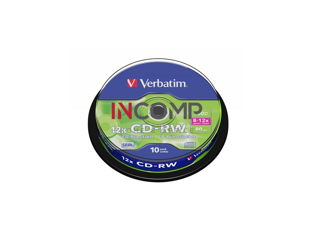 CD-RW disk, prepisovateľný, SERL, 700MB, 8-10x, 10 ks, cake box, VERBATIM