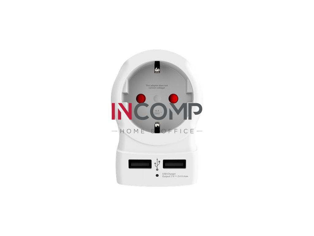 Skross UK plug konvertor a USB nabíjačka v jednom pre cestujúcich z Európy do Spojeného kráľovstva. 2 x USB vstup umožňuje súčasne nabíjať smartfón a tablet, pričom ho možno použiť aj s uzemneným zariadením (notebook, fén). -uzemnený -vstupný konektor krajiny: Európa -výstupný konektor: Veľká Británia -vstupné napätie: 100V - 250V -max. prúd: 13A -výkon: 100V -700W/250V - 1750W -USB výstup: 5V/2400mA -rozmery (s balením): 105 x 175 x 55 mm (Š x V x H) -hmotnosť: 0,113 kg
