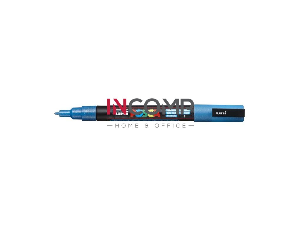 Dekoračný popisovač, 0,9-1,3 mm, UNI"Posca PC-3ML", lesklá svetlomodrá