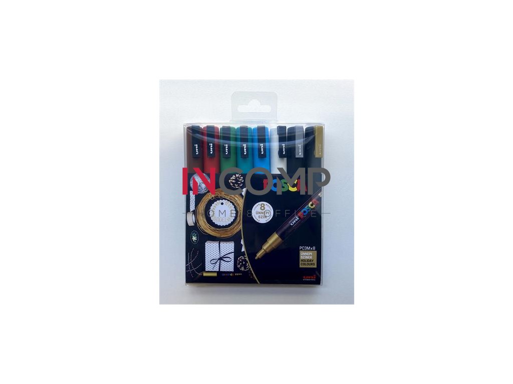 Dekoračný popisovač, sada, 0,9-1,3 mm, UNI "Posca PC-3M Holiday", 8 rôznych farieb