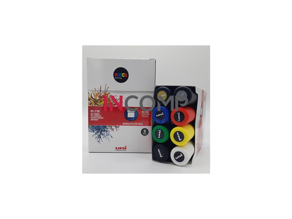 Dekoračný popisovač, sada, 15 mm, zrezaný hrot, UNI "Posca PC-17K, 8 rôznych farieb