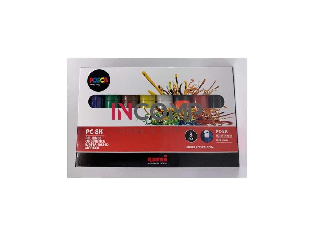 Dekoračný popisovač, sada, 8 mm, zrezaný hrot, UNI "Posca PC-8K", 8 rôznych farieb