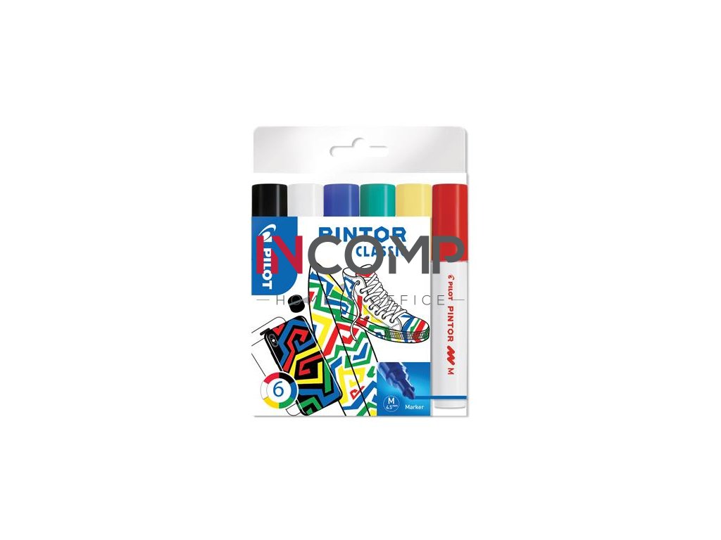 Dekoračný popisovač, sada,1,4 mm, PILOT "Pintor M", 6 druhov klasických farieb