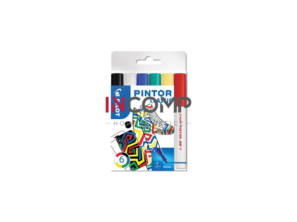 Dekoračný popisovač, sada,1 mm, PILOT "Pintor F", 6 druhov klasických farieb