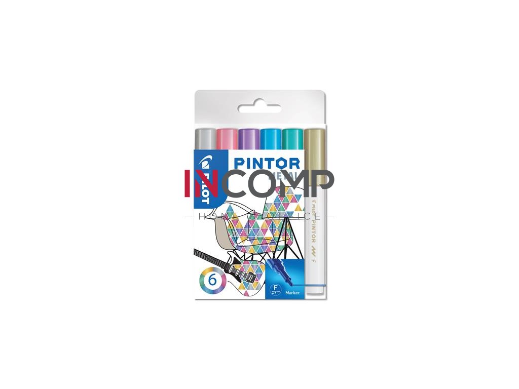 Dekoračný popisovač, sada,1 mm, PILOT "Pintor F", 6 druhov metalických farieb