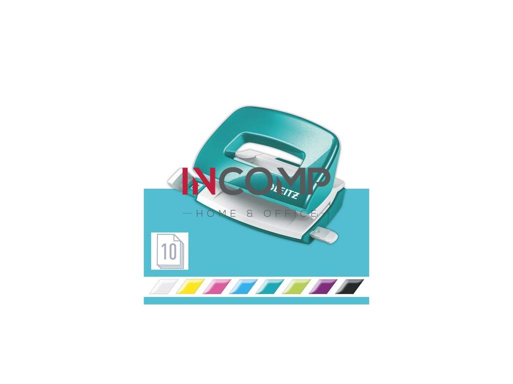 Dierovačka, 10 listov, kovová, mini, LEITZ "Nexxt Wow", ladovo modrá