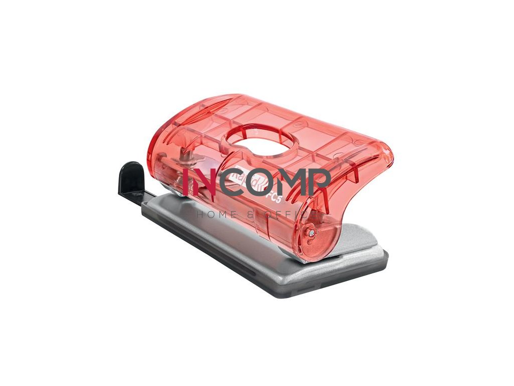 kompaktná mini dierovačka s plastovým ramenom a kovovým podstavcom