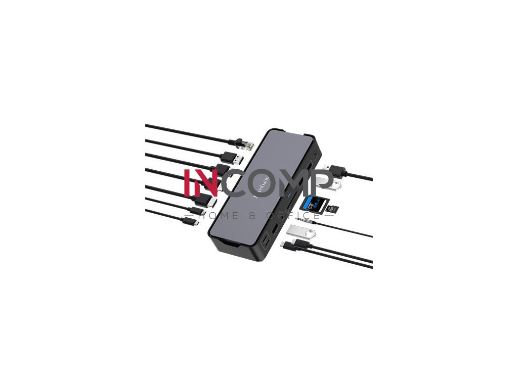 Dokovacia stanica USB-C Pro s 15 portami. -HDMI: 2 ks -DP: 1 ks -RJ45: 1 ks -USB-A 3.2 Gen2: 1 ks -USB-A 3.0: 2 ks -USB-A 2.0: 1 ks -USB-C 3.2 Gen2: 2 ks - SD 4.0: 1 ks -Micro SD 3.0: 1 ks -audio jack: 1 ks -USB-C hostiteľ: 1 ks -USB-C PD: 1 ks -hmotnosť: 0,31 kg -rozmery: 16,8 x 6, 85 x 3,3 cm (dĺžka x šírka x výška) - dĺžka kábla: 1 m - rozsah napätia: 5V - výkon: 100W