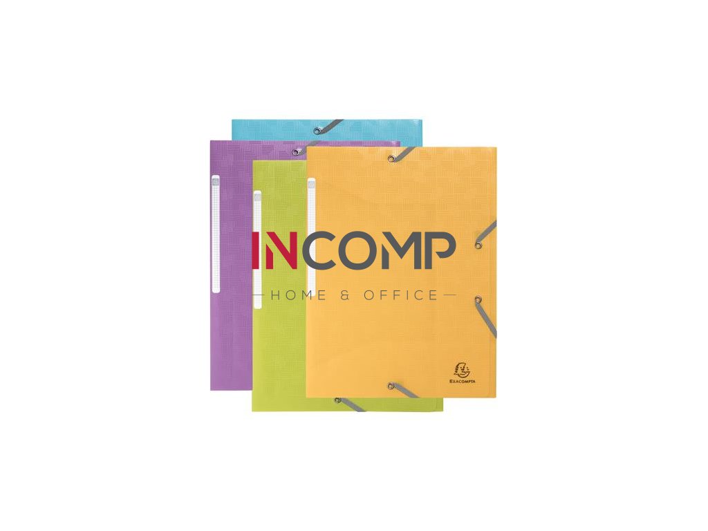 Prémiová doska s gumičkou na dlhodobé použitie! -ideálna voľba na používanie v škole, doma alebo v menšej kancelárii-určená na uloženie dokumentov formátu A4 -0,5 mm PP PP materiál -uzatváranie pomocou gumičky umiestnenej v rohoch -3 vnútorné chlopne pre bezpečné uloženie dokumentov -kapacita: približne 250 listov (80 g/m2) -chrbtový štítok pre jednoduchú identifikáciu obsahu -mix farieb, farba sa nedá vybrať (cyánová, fialová, lime, mango) -vyrobená z materiálu s certifikátom Blu Angel