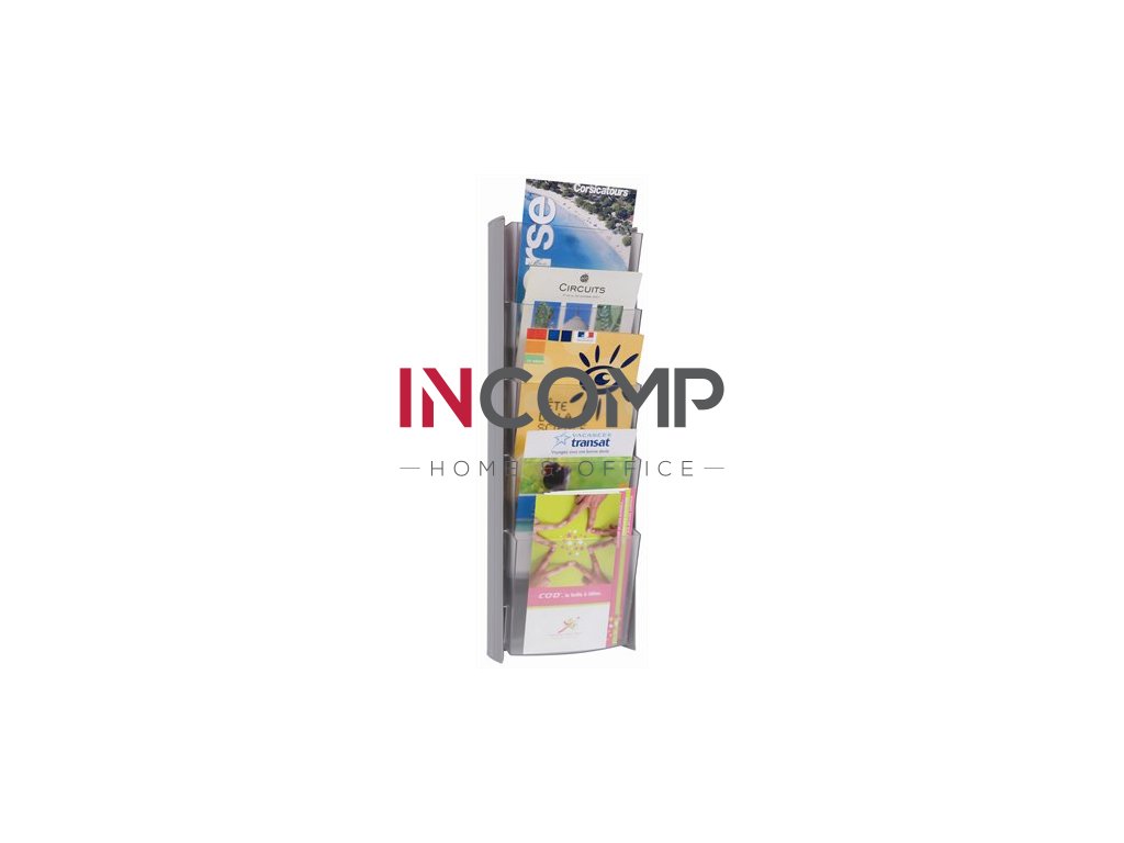 Držiak, katalógový nástenný A5, 5 priečinkov, ALBA, strieborný