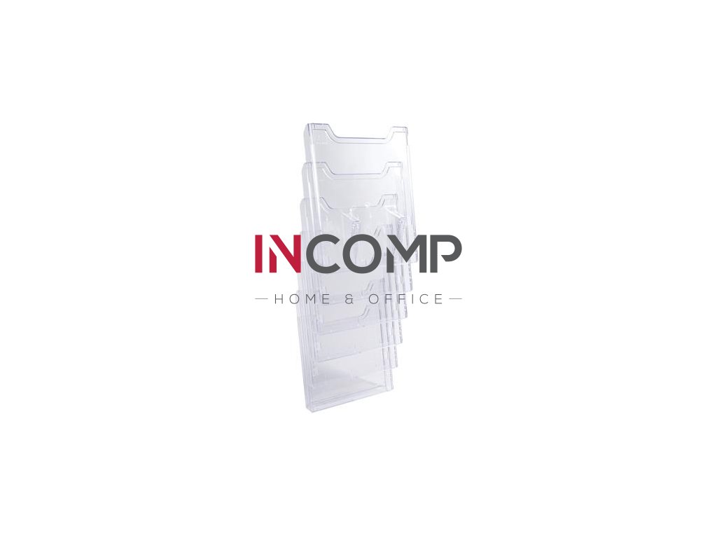 Držiak na katalógy, nástenný, A4, stojatý, 6 priehradiek, EXACOMPTA "Office", priehľadný