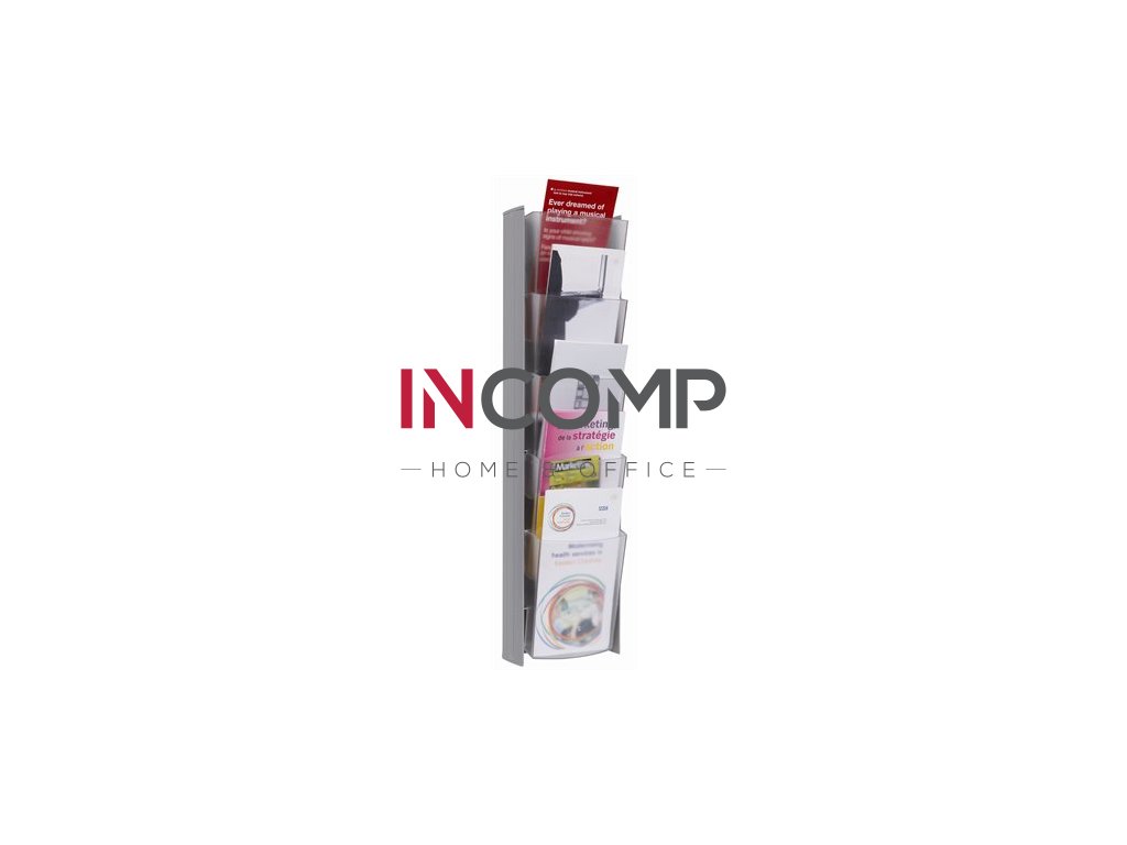 Držiak na katalógy, nástenný, LA4, 5 priečinkov, ALBA, strieborná