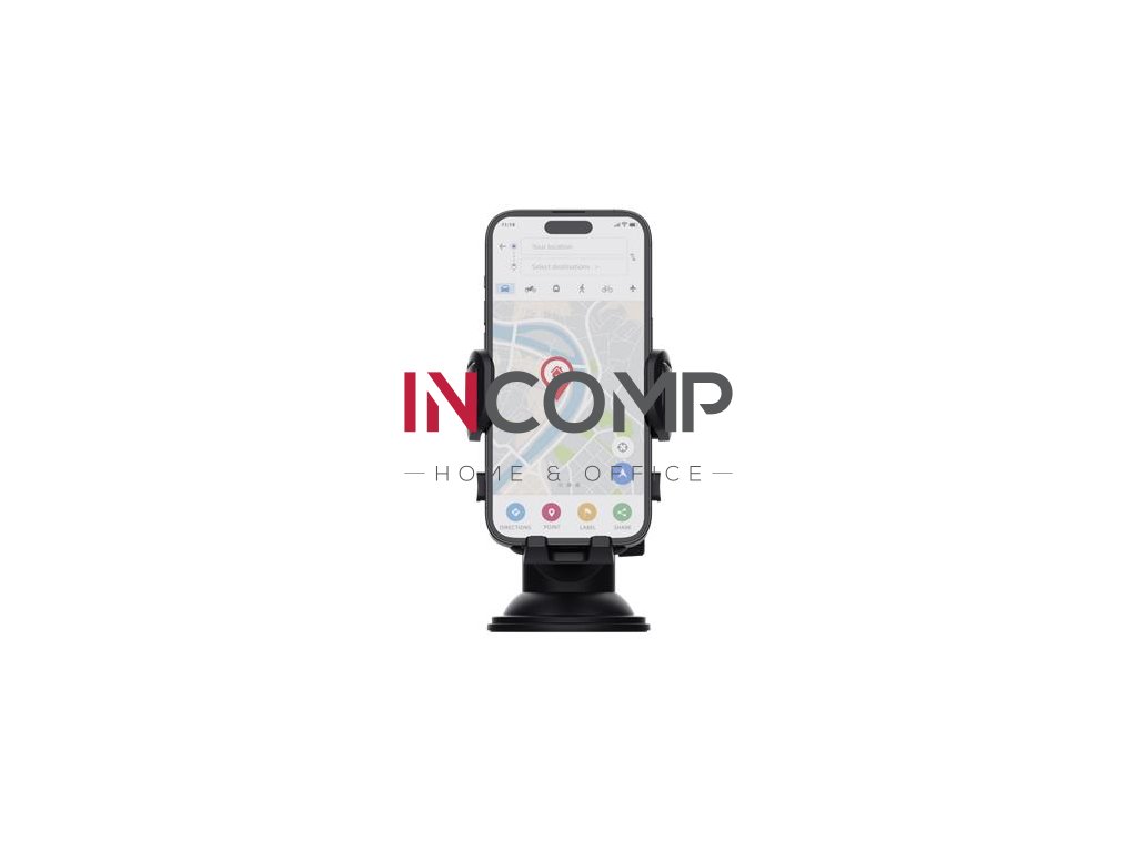 Držiak telefónu do auta, ktorý je možné uchytiť k ventilácii alebo k čelnému sklu.