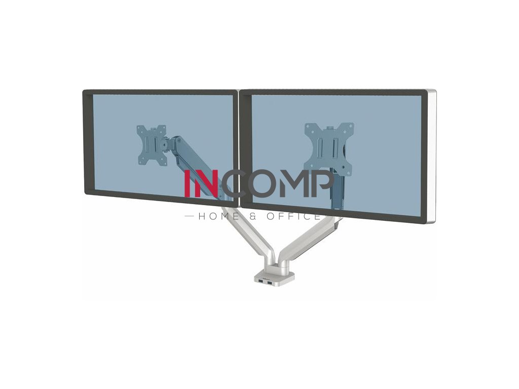 Držiak na monitory pre dva monitory, FELLOWES „Platinum Series™ Dual“, strieborný