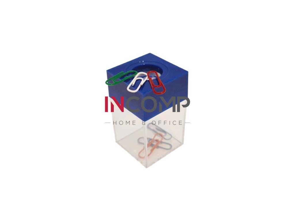 Držiak na kancelárske spinky s priehľadným telom a magnetickým vrchnákom. Spinky nie sú súčasťou balenia, výrobok sa predáva prázdny.