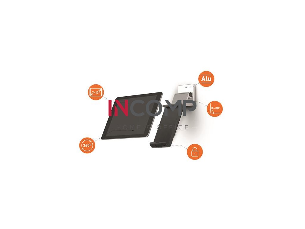 - proti krádeži, držiak je možné uzamknúť špeciálnym kľúčom a má integrovanú ochranu proti vytiahnutiu tabletu do strán