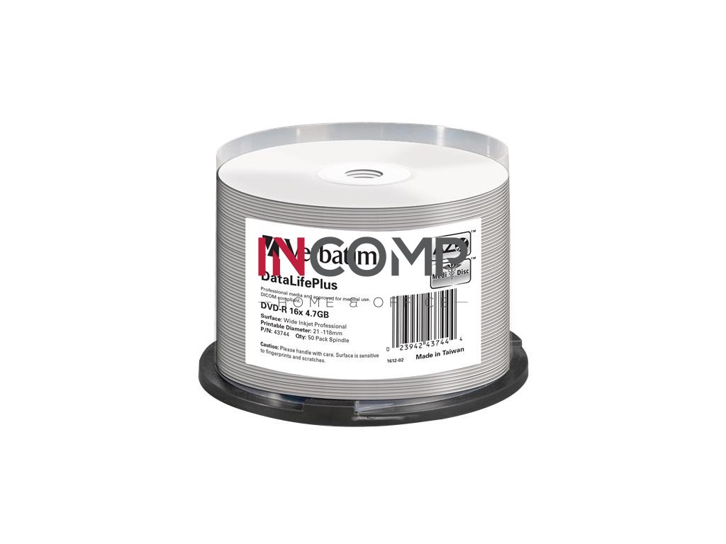 DVD-R disk, potlačiteľný, matný, no-ID, 4,7GB, 16x, 50 ks, cake box, VERBATIM