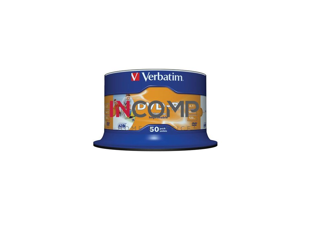 DVD-R disk, potlačiteľný, matný, no-ID, 4,7GB, 16x, cake box, VERBATIM