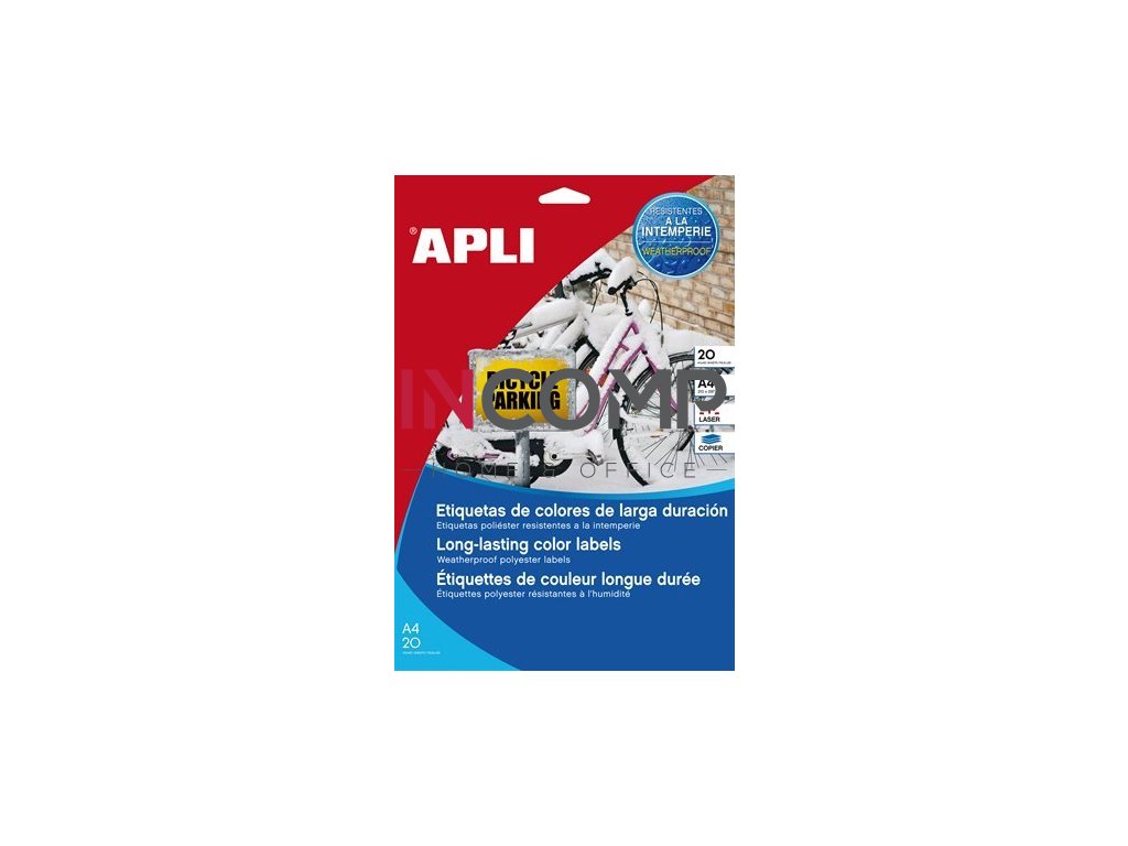 Etiketa, 210x297 mm, polyester, odolné voči poveternostným podmienkam, APLI, žlté, 20 etikiet/bal
