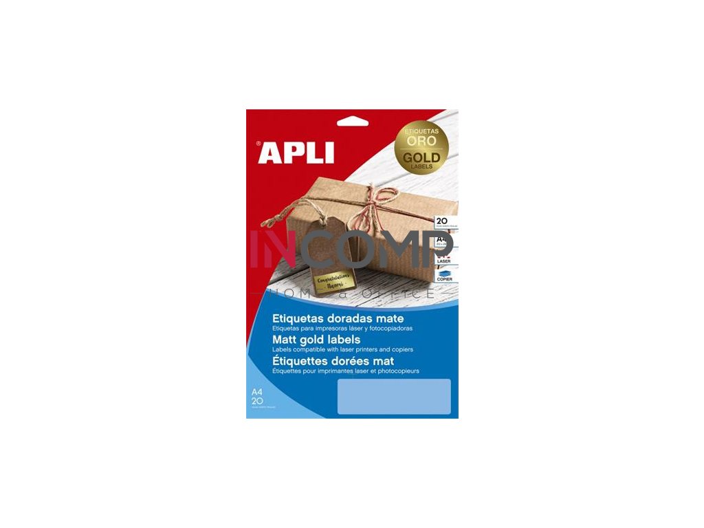 Etikety, k laserovým tlačiarňam a kopírovacím strojom,63,5x29,6 mm, APLI, matné, v zlatej farbe, 540 etikiet/balenie