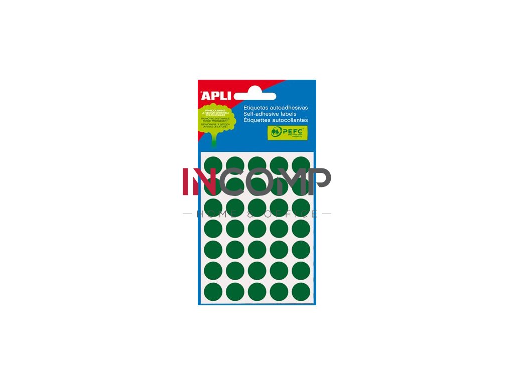 Etikety, okrúhle, priemer: 13 mm, ručne popisovateľné, farebné, APLI, zelené, 175 etikiet/bal