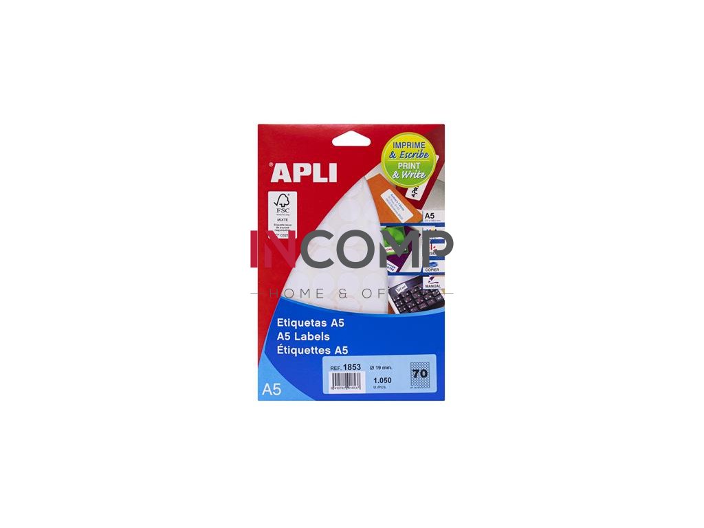 Etikety, okrúhle, priemer: 19 mm, na liste formátu A5, 1050 ks/bal