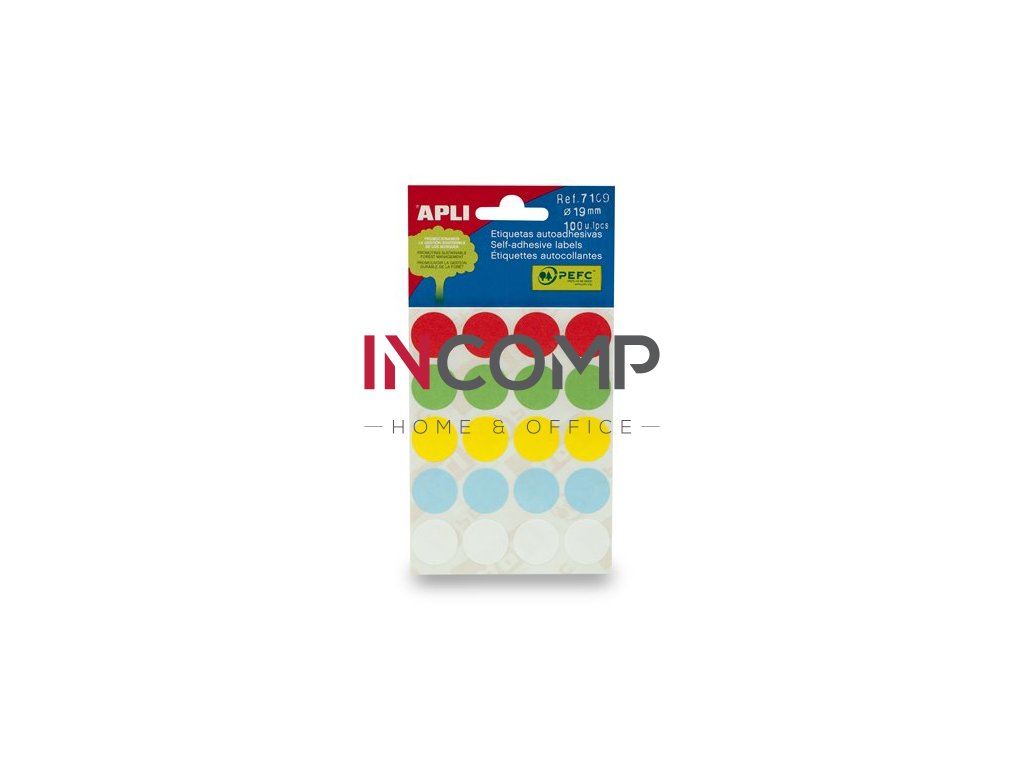 Etikety, okrúhle, priemer: 19 mm, ručne popisovateľné, farebné, APLI, mix farieb, 100 etikiet/bal